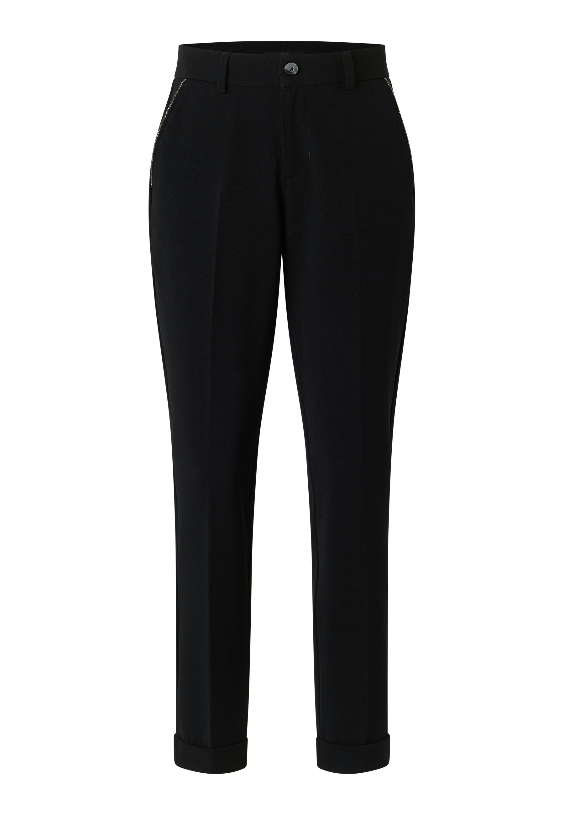 Diese Hose ist echt stylisch und super bequem. Sie hat eine klassische Chino-Form, die zu allem passt. Die seitlichen Eingriffstaschen sind mit coolen Schmucksteinen verziert, was der Louisa Chino TU Glam einen extra schicken Touch gibt. Sie ist einfarbig und hat einen coolen Beinumschlag, der total lässig aussieht.
